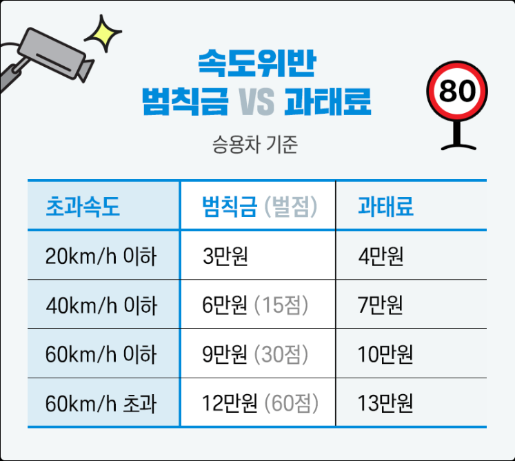 속도위반에 대한 범칙금과 과태료의 주요 차이점은 다음과 같습니다.